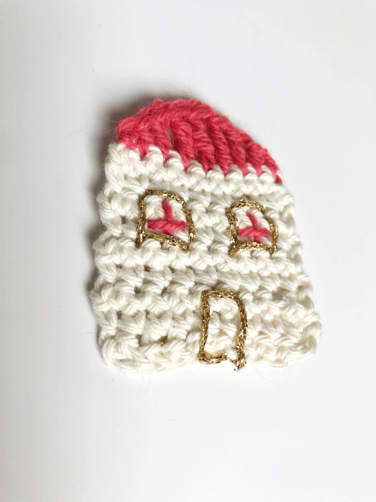 5. Now comes the best part – the details! Feel free to copy my embroidery to create windows and the door, but this is a great chance to use your imagination and create some wonderful detailing and give your little house personality!