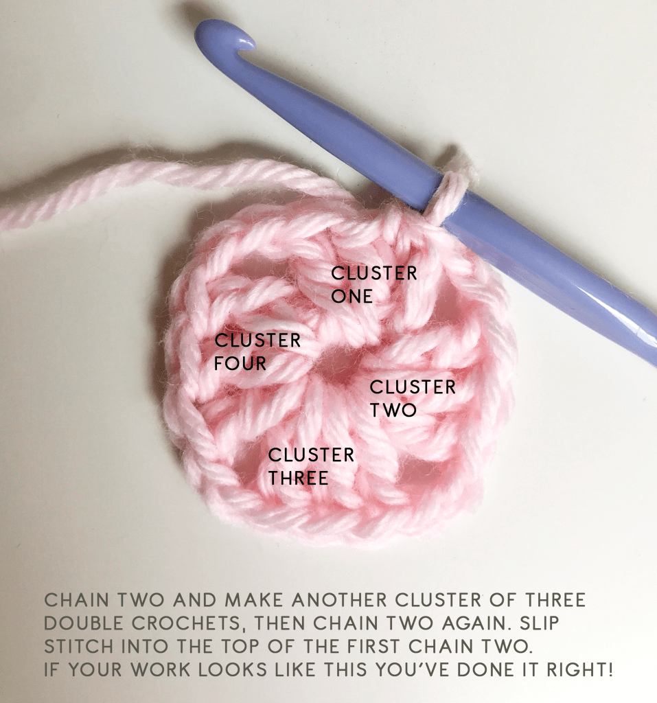 What’s the secret? Well, by chaining two instead of three at the beginning of the round we eliminate that skinny starting chain and create a shorter, firmer but still working chain. It really is as simple as that. Plus, but flipping the square over (but not reversing it – sorry, I couldn’t resist) you are able to work into the nearest chain space to you, again making the starting chain even less visible! I’m all over this technique and I hope you will be too…