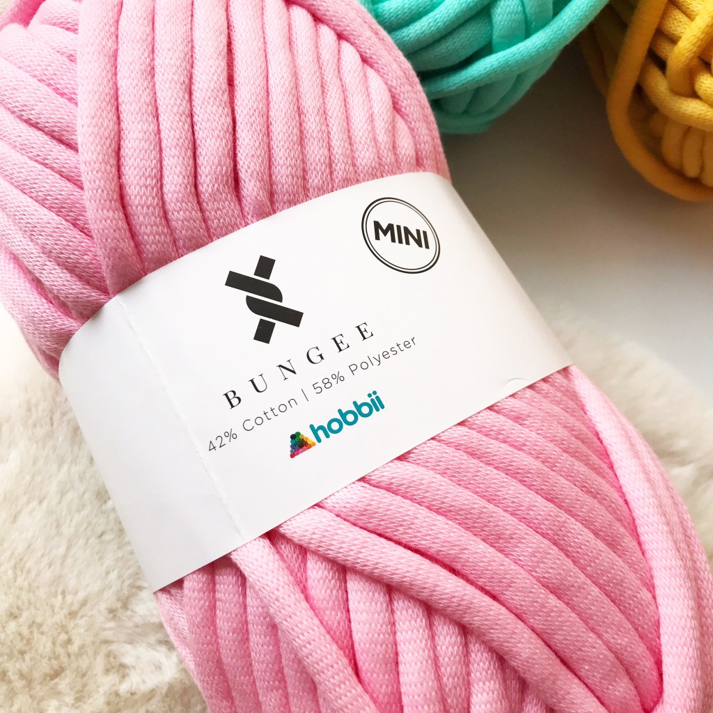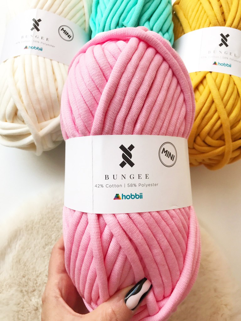 So, what’s good about this yarn? Pudgy, plump, squidgy and definitely NOT mini, Bungee is a real treat for lovers of super-chunky yarn! It is a wonderfully full-feeling and unique product that will delight. Its composition of a cotton tube stuffed with polyester filling is really tactile and comfy-feeling, and you can really let your creativity take off and come up with plenty of unique takes on various homeware projects.