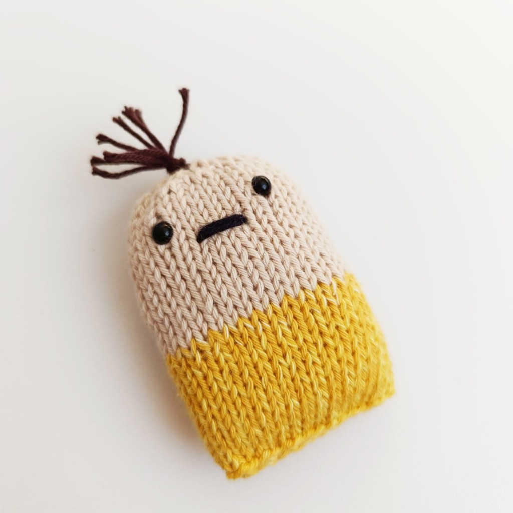 So, it’s my pleasure to offer this cute free pattern for you today which is part of my new Tiny Family collection of knitted toys. If you’ve been following my socials you’ll have seen Harriet (Halloween Harriet is her full name) and Clarence the Fisherman getting HEAVY rotation on my feeds, so I thought it was only right to share their Baby Ruben with you to say thanks for supporting me and being here.