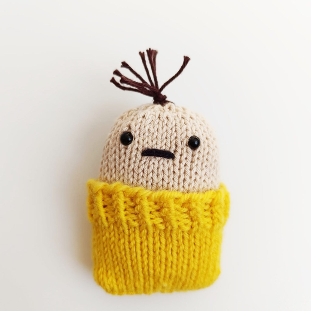 Anyway, over the last few months I’ve been slowly rediscovering small-scale knitting and the experience has been so calming, fun and inspiring. I was instantly brought back to when I started out on my knitting journey back in the early 2010s. Back in the day I would spend hours knitting up miniature people and small fruits and vegetables, enjoying working on a small scale on my circular needles, taking the time to think about outfits, accessories and other small details, above all loving working with simple shapes and emphasizing basic techniques. OG followers might even remember my knitted onions. They were ridiculous, right? Ridiculously FABULOUS!