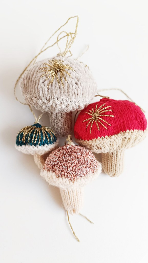 So, of course I’m thrilled to share the pattern for these gorgeously cozy, cute toadstools with you! This pattern will provide you with the basics of how to knit up your own toadstool and give you some cool ideas on how to jazz up your project with yarn ideas and embellishment tips. These toadstools look great hanging from a Christmas tree, a door handle or all snuggled up together as a centerpiece in a bowl. No matter how many you make or how you style them, they’ll look fantastic and really add a special touch to your A/W decor. Let’s go!